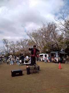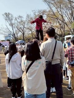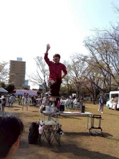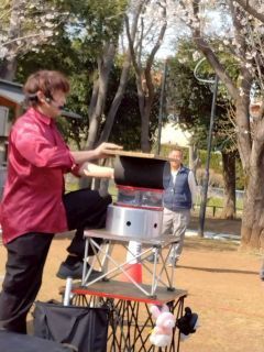 | 記事 | 出店はマシュマロ焼きと遊び「独楽、けん玉、ベーゴマ、皿回し、羽根つきと大道芸という組み合わせとなった。 この内容は大変、気を遣うイベントとなった。 何故かというと、前々回の反省会の際に、桜フェスを盛り上げるのに大道芸人を呼んでにぎやかにしたらという意見があり、その方向でことが進み始めた。 まず初めに大道芸人を選ぶとなると有名どころは1回?十万円しもすると聞いてあきらめかけました。しかし、以前ふるさと協議会の新年会に出演したことのある松戸出身のパフォーマー「KAYA」さんに声をかけたところ快く引き受けてくれた。 次はPR の仕方と演技スケジュールの調整、最期に当日の天気と課題は幾つもありました。 PRはあそぼうよのチラシと一緒に配るつもりでしたが間に合わず、公園や歩行通路にポスターを張りました。 大道芸は急遽決まったイベントだったので、場所の確保と開催時間がすべて当日に決めることとこととな慌ただしかった。 最後にイベントは天気次第で決まるもの。開催1週間前の天気予報では当日雨模様の予報が出ていて中止の覚悟をしていました。 当日は一流の大道芸人「KAYA」さんのバルーン,、クリスタルボール、ジャグリング,、バランスボードなどを披露し、その芸を子供たちは食い入る様に見ていました。 「KAYA」さんはサンリオピューロランドにも出演しているとのことでした。夏祭りに呼べたらいいね |